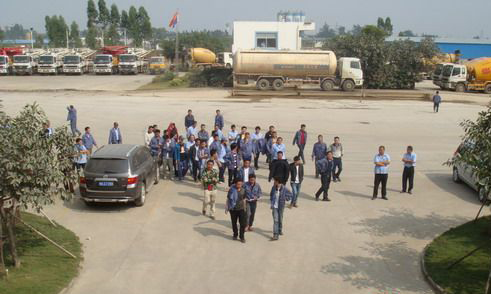 11月30日上午,海南智海混凝土有限公司廠區內停放了十多輛大型混凝土攪拌車,數十名司機三五成群聚集在院子內,或站或坐交談。