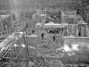 一位建筑工人告訴記者,上個月底該建筑就開始拆了,聽說是因為澆筑混凝土時出現了問題,被工程質量監督部門叫停拆除。