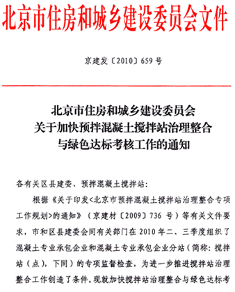 核心提示:北京市住房和城鄉(xiāng)建設(shè)委員會(huì)關(guān)于加快預(yù)拌混凝土攪拌站治理整合與綠色達(dá)標(biāo)考核工作的通知