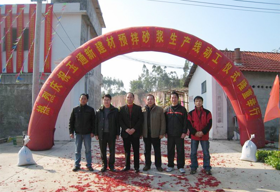 2010年12月26月上午10點許,迎著明媚的陽光,玉林市第一條預拌砂漿生產線奠基了。參加奠基儀式的有:玉林市散裝水泥辦公室陸武平主任,晏立堯、黃拓副主任,廣西玉通新建材有限公司董事長陳莊梓,及仁厚鎮黨政有關領導和廣西玉通新建材有限公司員工等。