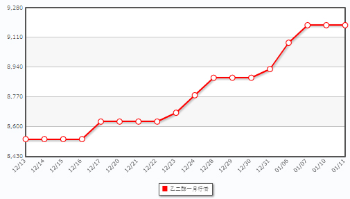 市場走勢分析:因就業報告顯示,12月份美國非農就業人數增幅不及此前預期,紐約商業交易所(NYMEX)原油價跌至三周來的最低水平,乙烯行情上揚為主。下游方面,聚酯切片市場較為安靜,成交清淡,市場以觀望為主。江浙滌絲產銷適度回落,多數為7-8成,部分稍高能勉強做平或略超,少數較低為5-6成,短期滌絲穩中小幅震蕩為主。滌短報價大都上漲。下游工廠經過前期的備貨之后,企業均具有一定的存貨,短期內備貨的積極性下降。下游紡織終端由于用工荒問題在節后將繼續困擾紡織服裝業,企業觀望較多。綜合以上因素,預計短期內乙二醇市場行情將以盤整走勢為主。