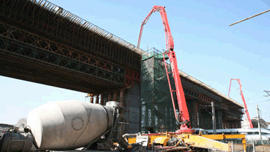 本次澆筑完成的連續(xù)梁梁長(zhǎng)113.3m,梁頂寬12m,混凝土方量1334方,為大跨度雙線鐵路梁。它的澆筑完工,為下一步寧杭客專引入杭州東站施工創(chuàng)造了有利的條件。