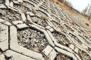 “這是生態混凝土,我們揚州的航道上第一次使用。有了它,水上航道也能披上綠裝!”帶著市民的疑問,記者找到了這段航道的建設單位——揚州市航道處。負責這段航道建設的綜合計劃科副科長馬虎陽告訴記者,這種能生長出小草的混凝土名叫“生態混
