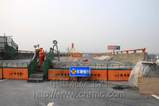 據悉,該工程位于上海市松江區內,橫潦涇大橋為同三國道(A30)跨越黃浦江上游支流橫潦涇的一座大橋。主橋為三跨變截面預應力混凝土連續箱梁,跨徑組合85m,全長295m。根據航道整治規劃的要求,橫潦涇大橋現狀通航尺度不滿足整治后的III級航道通航凈空尺度要求,因此需要抬高橋面標高,從而需要對老橋進行改造。根據上海城建設計院設計需對橋梁進行整體頂升1.58米。