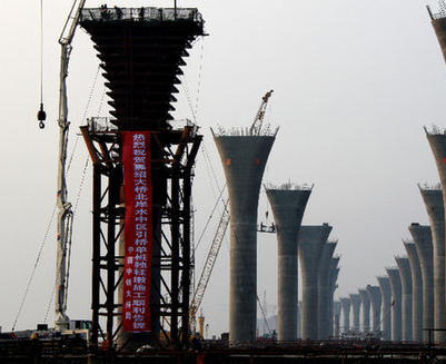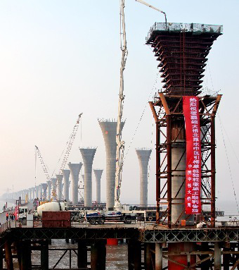 5月17日8時8分,在一片鞭炮聲中,嘉紹跨江大橋B80號右墩開始曲線段混凝土澆筑,下午 18時 30分順利完成。至此,由中鐵大橋局承建的國家重點工程嘉紹大橋北岸水中區引橋130座墩身全部完工。
