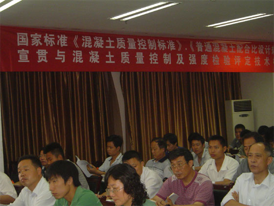 隨著合肥市城市建設的深入,混凝土企業得到快速發展,混凝土生產的安全和質量控制監管成為各方面關注的重點。為推動混凝土生產應用技術的發展,推廣先進實用的混凝土生產和應用知識與技術,解決混凝土生產過程中的疑難問題,加強混凝土質量管理,同時為了使我市混凝土企業的管理和技術人員及時學習住房和城鄉建設部發布的《混凝土質量控制標準》及《普通混凝土配合比設計規程》。合肥市散辦配合全國高科技建筑建材產業委員會培訓中心和中建標技術培訓中心在肥于5月21和6月10日分別舉辦了兩期培訓班,針對混凝土企業技術負責人、實驗室骨干進行了混凝土實驗室實用技術及外加劑復配的實戰技能的強化培訓,宣貫《混凝土質量控制標準》、《普通混凝土配合比設計規程》與混凝土質量控制及強度檢驗評定技術標準。培訓班特地邀請了該領域的專家和教授親自授課,混凝土企業也高度重視,積極參加。培訓有效地提升了參訓人員對混凝土質量的技術管理水平和對新國標的準確理解和掌握,取得了較好的效果。