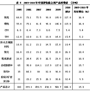 根據中國聚氨酯工業協會“十一五”發展規劃建議,當時預設的聚氨酯消費量目標為,到2010年達到400萬~500萬噸,而實際上,2010年底我國聚氨酯消費量已達600萬噸。“十一五”規劃中主要基本原料MDI,聚醚多元醇等的發展目標已超額完成。MDI產能發展目標原規劃89萬噸,實際已達139萬噸;但TDI原規劃國內58萬噸產能計劃由于技術瓶頸等原因尚未達到,2010年僅達29萬噸(而同期拜耳,巴斯夫在上海已建46萬噸產能);原規劃對行業中各專業領域的重要的技術提升,科研開發要求大部分已實現,如甘肅銀光10萬噸TDI技術開發、上海高橋石化、天津三石化的萬噸級DMC連續法聚醚多元醇技術開發等。