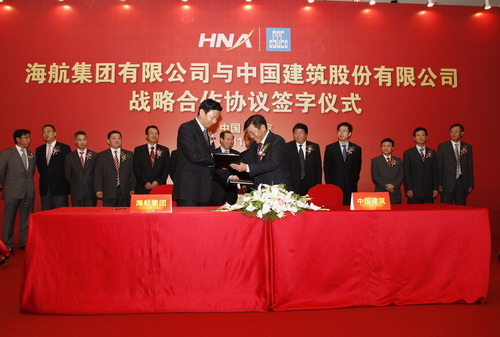 7月18日,中國建筑股份有限公司與海航集團(tuán)有限公司簽署了戰(zhàn)略合作協(xié)議。中建總公司董事長、黨組書記、中建股份公司董事長易軍,海航集團(tuán)有限公司董事局董事長陳峰等領(lǐng)導(dǎo)出席了協(xié)議簽字儀式。