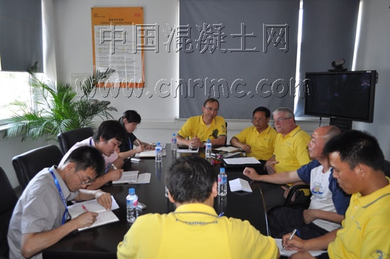 中國混凝土網記者現場采訪技術總監蘇建良先生(左二)和研發部總監騰萬里先生(右一)