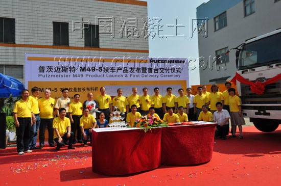 普茨邁斯特M49-5產品發布會暨首臺交付儀式在廠內隆重舉行,此次大會除了德國Dr. Karch (CTO)等一行技術專家遠道而來以外,上海市混凝土協會領導也應邀參加。
