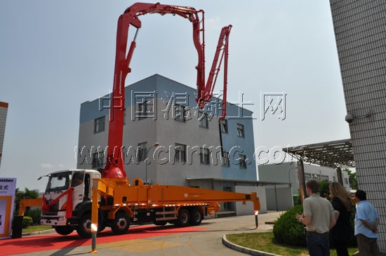 張總(CEO):明年后年我們每年都會有新產品上市的。就全球混凝土行業來看,全球各個地區混凝土行業的經營和泵車使用情況來看,確實是30到50米的泵車受到青睞。主要體現在性價比、經濟性上,還有市場的需求上。高度是一個主導因素,要適合市場的需求,還有道路的制約等等。我非常看好這款產品,因為它有全新的技術,在泵車行業內,它有很多同行業設備無可比擬的技術優勢,這些都將給客戶帶來最大的收益。接下來,技術方面會有我們蘇總給大家介紹。