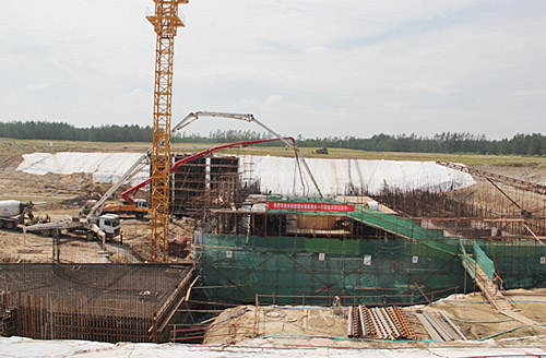 9月6日下午16時(shí),經(jīng)過施工人員18小時(shí)晝夜辛勤工作,東線洪澤站工程泵站站身三聯(lián)孔進(jìn)水流道1200立方米混凝土澆筑順利完成。