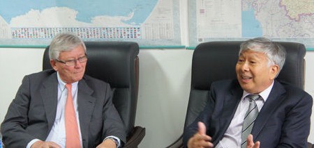 瑞士豪瑞集團(tuán)CEO馬庫斯.阿克曼(左)與中國水泥協(xié)會(huì)會(huì)長雷前治(右)就今后水泥業(yè)協(xié)同處理城市垃圾進(jìn)行交談。