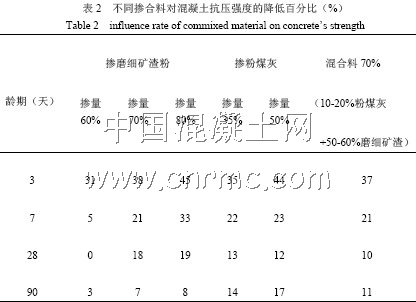 (2)大比例單摻粉煤灰或單摻磨細礦渣可顯著降低膠凝材料的早期水化熱,對后期水化熱也有較大的降低作用,采用三組分(含水泥、礦碴、粉煤灰)膠凝材料配制的混凝土,可以配制出絕熱溫升小并利于改善混凝土的抗裂性能的低熱混凝土。
