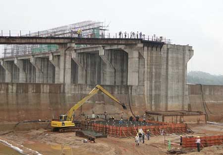 二期首次澆筑倉塊為泄水閘,澆筑地點在12#消力池,采用挖掘機入倉澆筑方式。躍洲水電站二期工程主要有:泄水閘1#~12#孔、船閘、左岸重力壩、升壓開關站、發電廠房及廠區工程等。截止10月9日,二期工程土石方開挖約10萬m3。