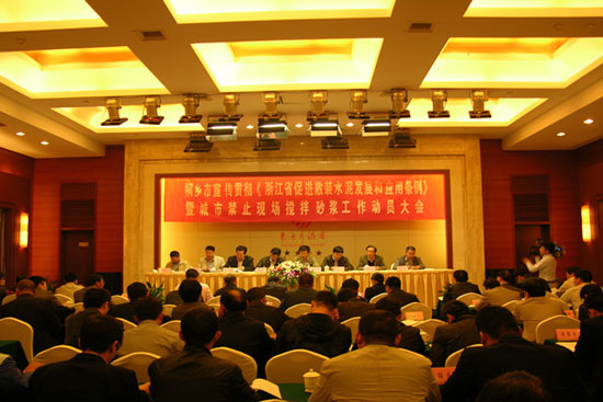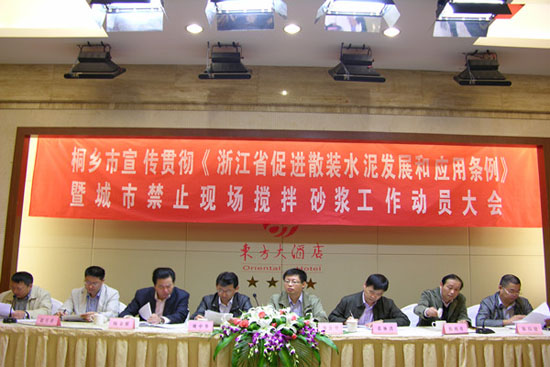 2011年 10月28日,桐鄉(xiāng)市政府辦公室主持召開“城市城區(qū)禁止現(xiàn)場攪拌砂漿工作動員大會”。