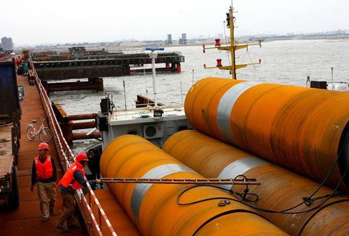 近日從泉州灣跨海大橋主橋工程現場獲悉,目前施工單位正抓緊建設主橋施工輔助平臺,繼10月底跨海大橋石獅段南主墩成功打下第一根鋼護筒樁之后,本月內主橋橋墩有望鉆孔灌注第一樁。據承擔主橋1號標段4.9公里建設任務的中鐵大橋局工程部楊經理介紹,所在標段將建設21個施工輔助平臺,屆時,將從先行打下的鋼護筒樁內鉆孔灌注橋墩主樁,水下作業置入鋼筋籠和澆注混凝土,工藝要求非常高,每個施工平臺完成8根鉆孔灌注樁,根據不同海底地質環境,每根鉆孔灌注樁深度約40米。目前,相關工作正有條不紊地進行。