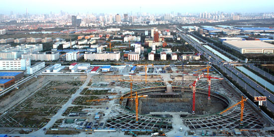 中國建筑第三工程局有限公司總承包公司承建的天津117大廈深基坑支護工程采用梯次聯合維護體系,即淺層卸土放坡、深層采用“兩墻合一”地下連續墻結合坑內兩道鋼筋混凝土水平支撐的圍護設計形式。目前,基坑內的土方已挖運完畢,正在進行墊層和防水施工,兩層超大環形內支撐完美呈現,雄偉而壯觀。