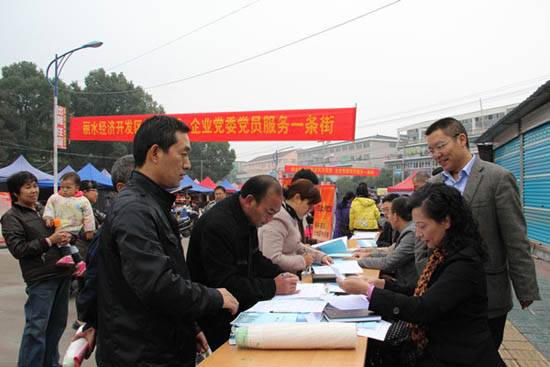 2011年11月11日開發區新墻辦、散裝辦參加了麗水經濟開發區機關黨委組織的黨員服務一條街活動。活動期間宣傳新型墻體材料、散裝水泥政策,分發《浙江省促進散裝水泥發展和應用條例》單行本和《散裝水泥、新型墻體材料宣傳工作手冊》300余冊,現場填做散裝水泥條例學習試卷及分發宣傳記念品,活動氛圍熱烈,引起了廣大市民群眾的熱心參與和互動,對新墻材和散裝水泥的推廣應用起到了很好的宣傳效果。