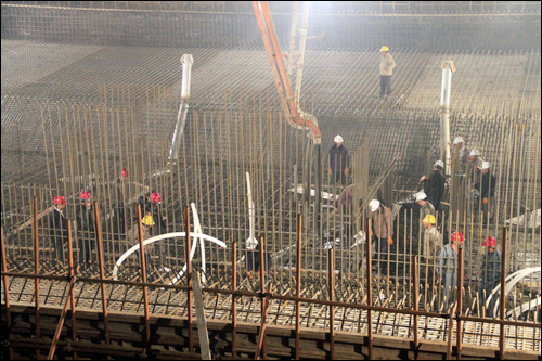 11月16日凌晨3時,經過施工人員近9個小時的連夜奮戰,東線泗洪站樞紐工程泵站第一次底板澆筑工作順利完成。此次澆筑開始于15日18時30分,累計澆筑混凝土537立方米。