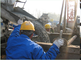 江漢六橋項目是中建商品混凝土有限公司承接的重點工程,該橋橫跨漢口與漢陽,36根水下大直徑超長樁的施工是其難點之處。該工程水下樁最長開挖深度達117米,直徑為2.5米,單根樁混凝土需求量在500方以上,要求混凝土4小時內坍落度基本無損失,初凝時間必須控制在24-28小時之間,各樁的檢測結果必須達到I類樁要求,對混凝土的施工性能以及施工的組織水平要求很高。