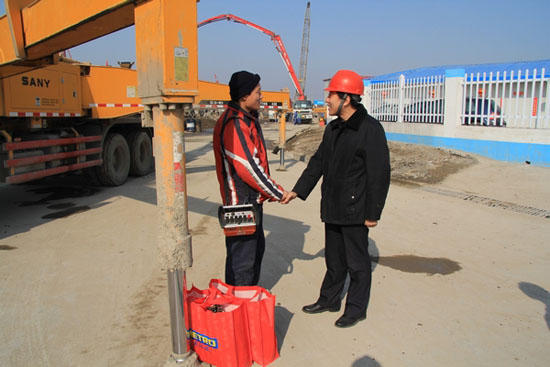 1月25日年初三早上,南京市預拌混凝土管理處負責人萬仁瑜一行兩人來到位于河西樂山路的青奧會議中心項目現場,認真聽取了施工單位中建八局三公司的項目負責人對該工程項目的情況介紹和對預拌混凝土企業的建議和要求。該工程為南京市青奧會項目的重點工程共需要混凝土60萬方左右,雖然工期緊、任務重、技術要求高,對混凝土供應企業有著嚴格的要求,但是混凝土企業的供應、服務和質量等贏得了現場人員的充分肯定。