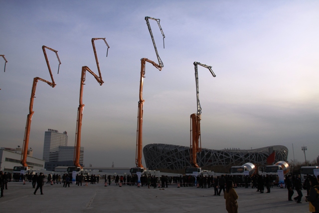 2月25日17時,以“成就20年關懷每一天”為主題的中聯–CIFA二代復合技術新品全球巡展在北京盛大開啟。白色底盤典雅高貴,橙色臂架高擎云霄,數十臺套新品,在最具魅力的“水立方”國家游泳中心與“鳥巢”國家體育場的映襯下,接受了來自全國近千名混凝土業內人士與媒體的檢閱。這是奧林匹克公園首次接受大型工程裝備集中全景展示。中聯重科與歐洲高端研發制造技術的高度融合,加以現代化的工業設計理念和制造工藝,中聯重科高端裝備制造的嶄新形象,堪與“水立方”和“鳥巢”媲美。