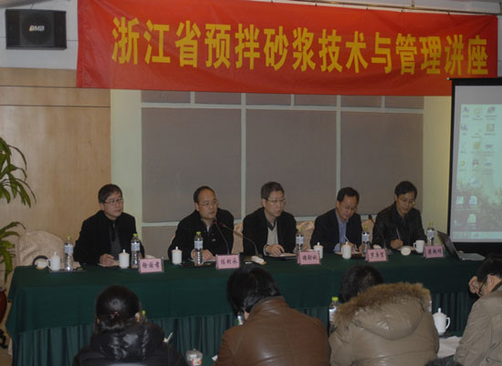 3月12- 13日,浙江省建筑科學設計研究院、中國建筑業協會材料分會、浙江省散裝水泥辦公室聯合在杭州舉辦全省預拌砂漿技術與管理講座。技術講座由省建筑科學設計研究院有限公司總經理游勁秋主持,省散裝水泥辦公室主任陳利永首先通報了我省2011年全省散裝水泥、預拌混凝土和預拌砂漿各項量率(指標)完成情況,分析了預拌砂漿行業面臨的發展現狀和發展趨勢,介紹了各級散裝辦大力開展行政執法、加強宣傳和促進行業節能減排。中國建筑業協會材料分會預拌砂漿推廣委員會主任、鄭權高級工程師作《預拌砂漿生產與應用技術及管理研究》報告;廣東龍湖建材科技有限公司北京技術中心主任羅庚望高級工程師作《特種砂漿配方技術研究及案例分析》報告;浙江省建筑科學設計研究院新材料研究中心徐國孝教授級高級工程師作《石灰巖機制砂制備干混抹灰砂漿的開裂問題及對策》報告。來自全省預拌砂漿生產企業技術副總、總工、試驗室主任、質檢組長,各市、縣(市、區)散裝辦業務骨干共70多人參加了這次技術講座。