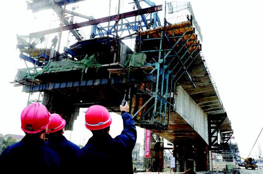 18日,荊州拍馬公路橋正在進(jìn)行箱梁混凝土澆筑。湖北省航運(yùn)管理部門(mén)利用引江濟(jì)漢引水干渠,開(kāi)辟長(zhǎng)江、漢江間的人工航道,工程管理方趕在引水渠未全面開(kāi)挖之機(jī),提前開(kāi)工60多個(gè)通航配套施工項(xiàng)目,既節(jié)約了建設(shè)成本,又爭(zhēng)取了通航時(shí)間。