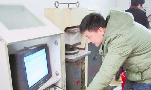 在膠州市建設(shè)局質(zhì)監(jiān)站樣品檢測(cè)室,記者看到,負(fù)責(zé)檢測(cè)的工程師王寶鑫正在進(jìn)行混凝土試塊抗壓強(qiáng)度檢測(cè)。他將從企業(yè)抽取來(lái)的一塊混凝土試塊安放在電子液壓式壓力試驗(yàn)機(jī)上。隨著機(jī)器的開(kāi)動(dòng),試件因承壓接近破壞而迅速變形,破壞荷載由壓力傳感器傳送至電腦中并自動(dòng)進(jìn)入檢驗(yàn)系統(tǒng)形成抗壓強(qiáng)度數(shù)據(jù)。檢測(cè)結(jié)束后王工對(duì)照設(shè)計(jì)的強(qiáng)度等級(jí)在混凝土試件抗壓強(qiáng)度檢測(cè)報(bào)告上鄭重地簽下了自己的名字。“為了保證準(zhǔn)確性,混凝土試塊以三個(gè)試件為一組。”王寶鑫向記者介紹道,通過(guò)測(cè)算的每組試件的抗壓強(qiáng)度值來(lái)檢驗(yàn)每組試塊是否合格,而且一個(gè)有效的檢測(cè)報(bào)告需要經(jīng)過(guò)主檢、校核、批準(zhǔn)、蓋章四道程序,層層把關(guān),確保檢測(cè)報(bào)告權(quán)威準(zhǔn)確。