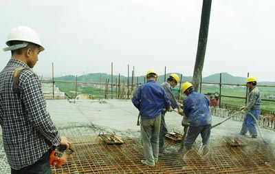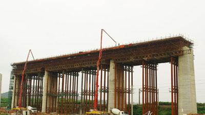 5月2日上午,中鐵四局二公司機管中心泵車正在局杭(州)長(沙)鐵路客運專線義金特大橋工地上澆筑現澆梁高性能混凝土。該現澆梁是義金特大橋最大的現澆梁,全長113米,需一次性澆筑混凝土1334立方。為確保混凝土供應的連續性,5月1日,該中心精心安排,合理組織,上足了人力和機械設備,克服了混凝土供應運輸距離遠,僅用43小時完成了全部混凝土供應施工任務。