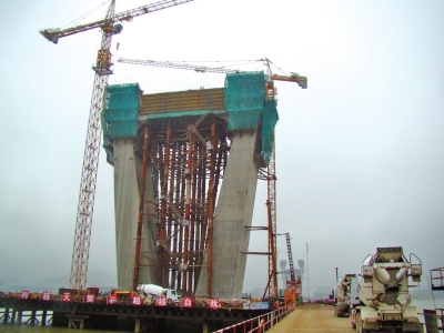 27日,從馬尾瑯岐閩江大橋Ⅱ標段項目部處獲悉,經過參建人員連續20個小時的晝夜苦戰,該橋Ⅱ標段4號主塔墩下橫梁第二次混凝土順利澆筑成功,在全橋主戰場率先完成了下橫梁澆筑施工任務,標志著瑯岐閩江大橋Ⅱ標段4號主塔墩工程即將拉開中塔柱施工帷幕。