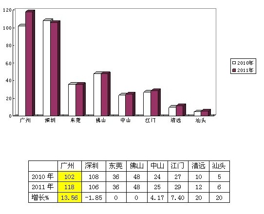 圖表 4 廣東省20110、2011年部分城市攪拌站數量(單位:家)
