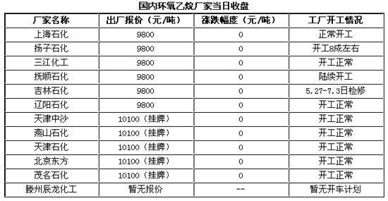 26日,國(guó)內(nèi)環(huán)氧乙烷市場(chǎng)暫穩(wěn)觀望,聽聞近期環(huán)氧乙烷即將出臺(tái)結(jié)算,業(yè)內(nèi)心態(tài)偏謹(jǐn)慎等待結(jié)算指引;當(dāng)前市場(chǎng)對(duì)于結(jié)算消息不一,有部分認(rèn)識(shí)表示基本將平結(jié)于9800元/噸;當(dāng)然還有一部分表示將會(huì)更低;當(dāng)前中石化工廠暫未透露任何消息,所以卓創(chuàng)也將密切跟蹤;鑒于下游恐慌心態(tài)猶存,工廠并未出臺(tái)積極的限產(chǎn)政策保價(jià),所以不排除環(huán)氧乙烷有繼續(xù)下跌的可能性。