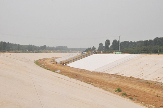 正在施工中的七里河倒虹吸進口漸變段與連接區、排冰閘邊坡