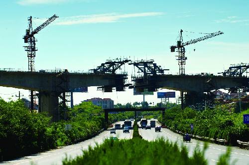 中鐵四局金溫鐵路擴(kuò)能改造工程項目部在330國道上搭建了安全防護(hù)架,既保證國道暢通,又使得工程進(jìn)展不受影響。據(jù)悉,金溫鐵路擴(kuò)能改造工程跨金華330國道、老金溫鐵路、金麗溫高速公路的特大橋,全長2793米,施工單位將充分利用7月和8月高溫少雨天氣,抓進(jìn)度、戰(zhàn)高溫,爭取在9月前完成特大橋連續(xù)三跨橋梁貫通。