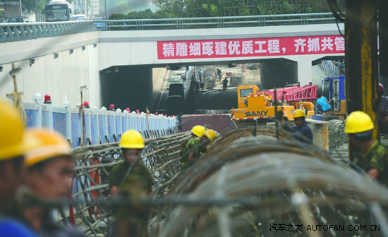 26日下午3點,記者在二環路光華下穿施工現場看到,一個直徑約半米、長37米的鋼筋籠橫臥在工地一側,十余名工人正對鋼筋籠進行焊接。這個鋼筋籠將被放置到樁基里。現場施工負責人代偉說,該節點64個樁基現已完成10個,初步計劃下月中旬完成所有樁基的施工。9月初將陸續進行承臺的修建。