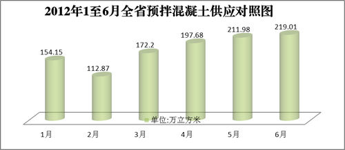 1至6月全省預(yù)拌混凝土供應(yīng)情況對照如下圖: