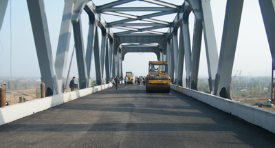 經過兩天的艱苦奮戰,10月29日,中南通道項目部跨日東高速公路特大橋鋼桁梁橋面環氧瀝青混凝土施工順利完成。