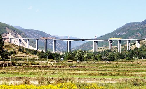 當日,隨著合攏節段23方混凝土被輸送至71.9米高空并成功澆筑,白玉村特大橋順利合攏。據悉,建成后的大麗高速公路是云南省投資規模最大的“經濟路”和“景觀路”。