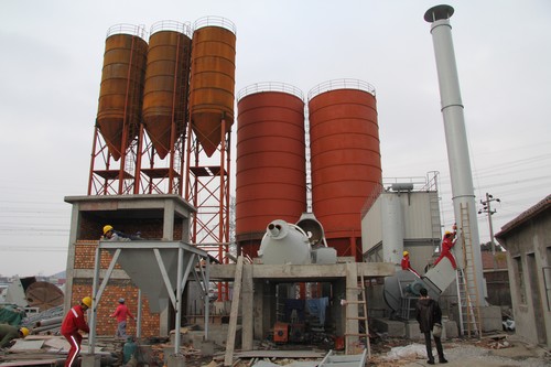 寧波城泰新型建材有限公司座落于北侖區,總投資3000萬元,設計生產預拌砂漿30萬噸。現在,主機設備、烘干設備均已進場,并開始安裝。5個筒體已安裝完成,正進行防銹處理。