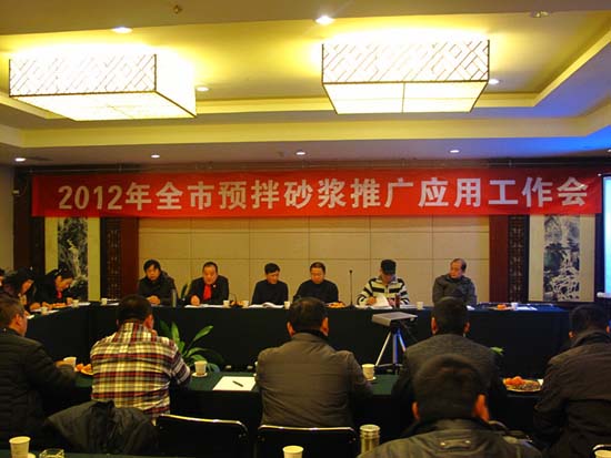為認真總結2012年預拌砂漿推廣應用工作成效,謀劃2013年工作思路,市商混站于12月28日召開了2012年全市預拌砂漿推廣應用工作會。市城建委節能處徐海清處長、各區(開發區)建管站分管副站長、科長及商混站相關人員共計60余人參加了會議。