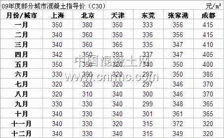小編通過各混凝土協會匯總到09年度部分城市混凝土指導價。(如下表:)