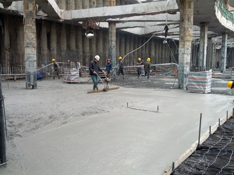 第一段基礎底板混凝土澆筑前,項目部主要領導以及工程部、技術部、安全部和質量部等部門的員工全部親臨施工一線,檢查澆筑前的施工條件,并組織施工操作人員進行了細致的作業交底。在監理驗收合格后,隨著機械的轟鳴聲,底板混凝土的施工隨即緊張有序的開始。