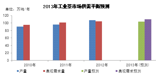 2、2010-2013年工業萘市場供需平衡分析