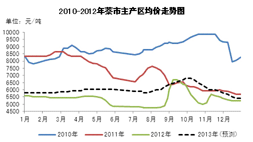 圖2 2011-2013年(預測)萘市主產區均價走勢對比