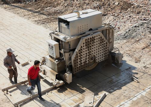 近日,在西安曲江新區羊頭鎮村拆遷工地上,一臺大型切割機將廢棄的村中路面進行分塊切割。據了解,這臺切割機能以每小時50米的速度作業。切割回收的混凝土石塊可以用于小區園林道路、廣場和公路護坡的鋪設。這個村也是西安首家使用路面切割機將混凝土道路再利用的村子。