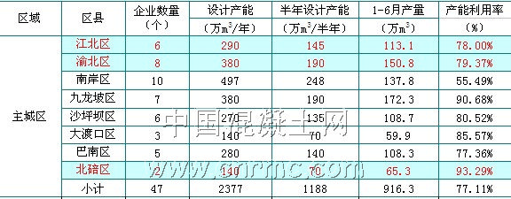 以上前十名企業中,其中三家位于規劃中的兩江新區,建工新材位于渝北區,三圣和富皇位于北碚區(見地圖分布:http://222.73.255.210:8090/map/),建工新材和三圣分別在全市上半年產量排名中分別位于第一和第二名,由此可見建工新材和三圣兩企業已經占據該區域混凝土市場的重要份額。