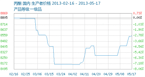 上游純苯﹑異丙醇﹑丙烯價(jià)格下跌,丙酮成本支撐作用減弱;下游需求跟進(jìn)不足,丙酮市場(chǎng)重心區(qū)間震蕩。市場(chǎng)庫(kù)存偏低,近期部分廠家略有提價(jià),但備貨積極性不高,以觀望居多。