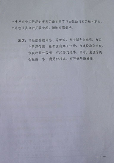 《會議紀要》明確標示:在沒有現行有效的限制進入規定的情況下,本著依法行政的要求,原則同意中凱公司混凝土項目進入麗水,蓮都區政府和市直相關部門要依照法律、法規,參照市區現有同類企業做好審批和服務工作。